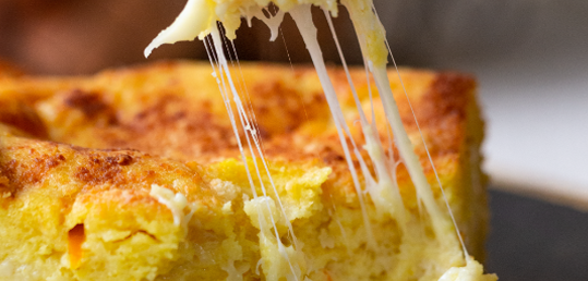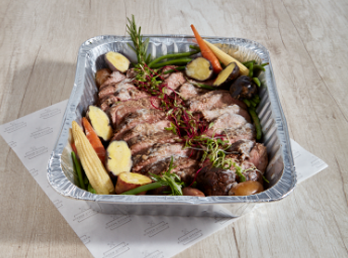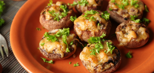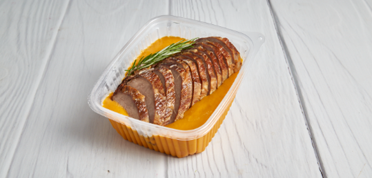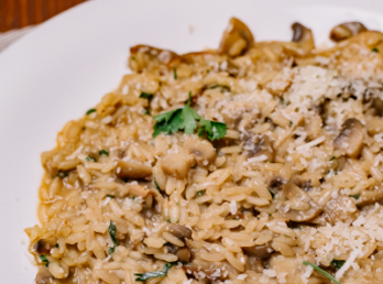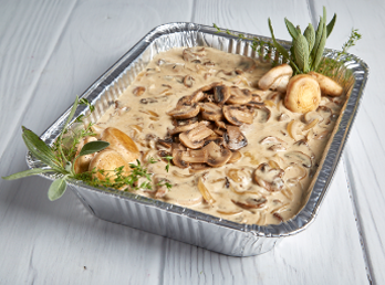 Trozos de lomo fino, salsa bechamel perfumada con porcino italiano y champiñones salteados.