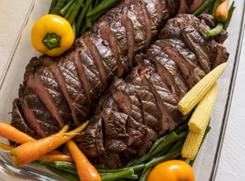 Hervido por largas horas en vino tinto, hierbas orgánicas y pimienta.
